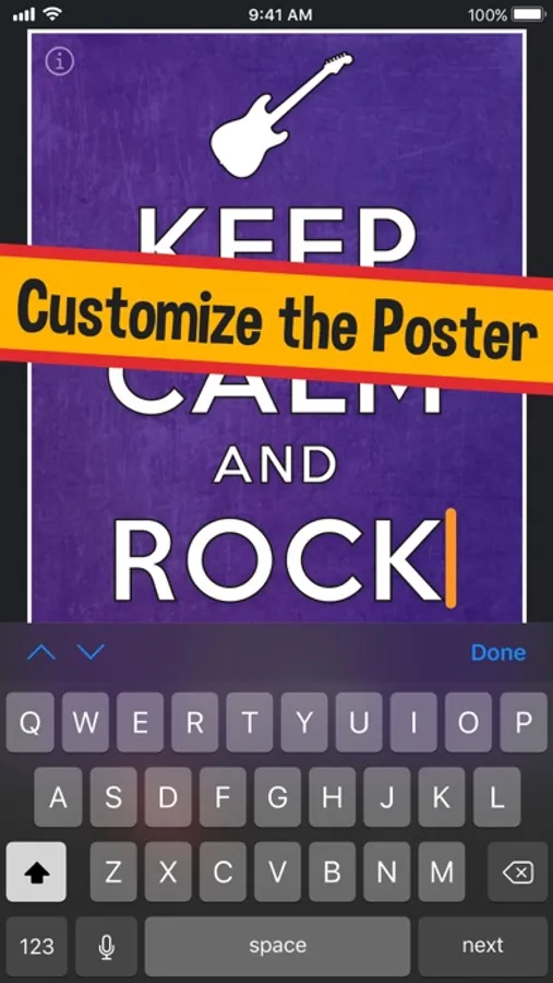⁃ Change the text (e.g., Keep Calm And Drink Tea) by tapping any word.
