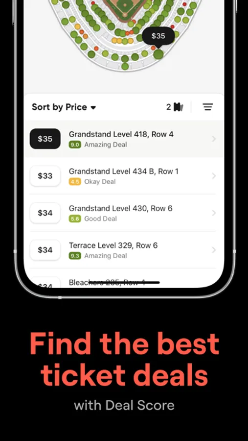 Deal Score rates every available seat based on price, section, visibility and more