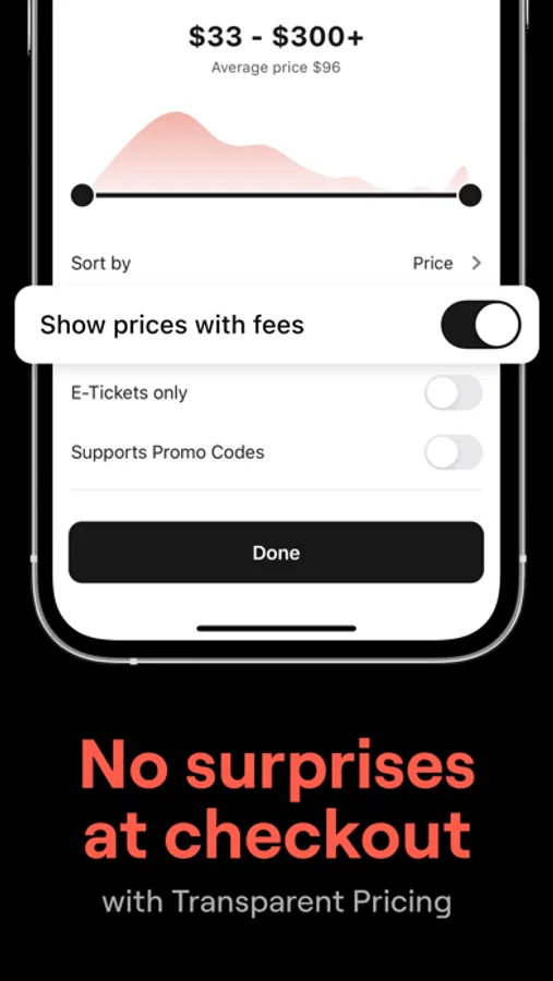 Search tickets with the fees already included, so you won’t be surprised when it comes time to pay for them