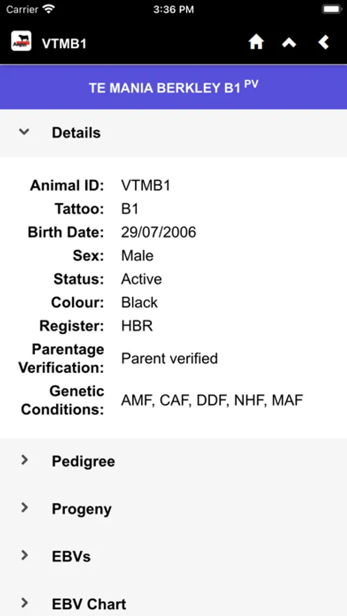 All of this animal information can be found under Animal Search within this handy Angus APP.