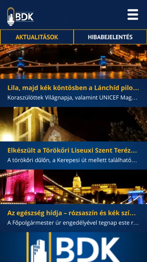 Ha hibás lámpát, díszkivilágítást, kivilágított középületet látsz az utcán, applikációnk segítségével pillanatok alatt bejelentheted a BDK szervizközpontjába. Szerelőink a lehető legrövidebb idő alatt megkezdik a hiba kijavítását.
