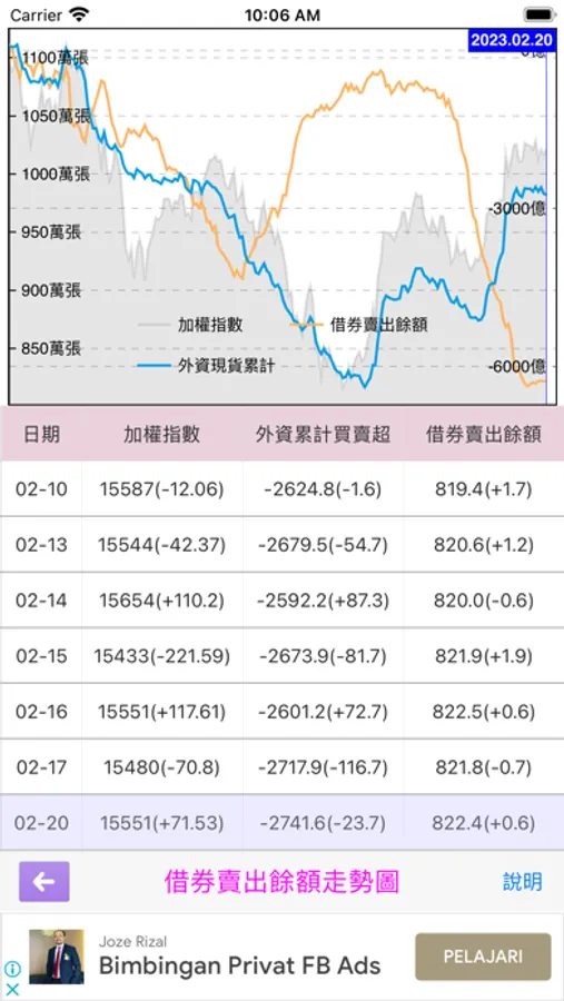 2.借券賣出餘額走勢圖