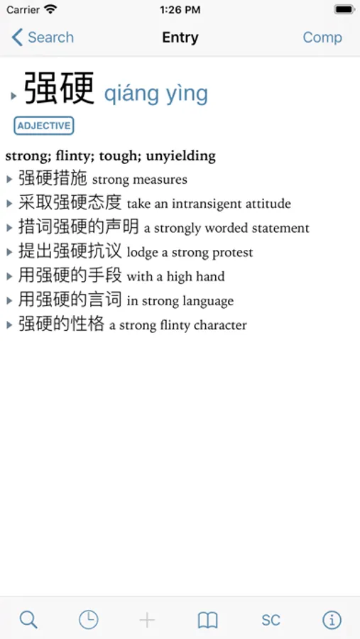 * High quality audio for all Chinese words and phrases in the C-E dictionary, including example sentences.