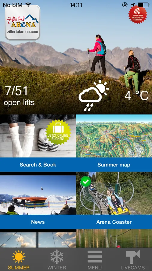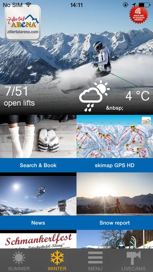 Interactive real-time guide for the holiday region Zillertal Arena with GPS localization on the skimap for easier orientation, live information directly from the lift operators – open slopes and lifts, weather, webcams, weather stations, livestreams, snow levels,...