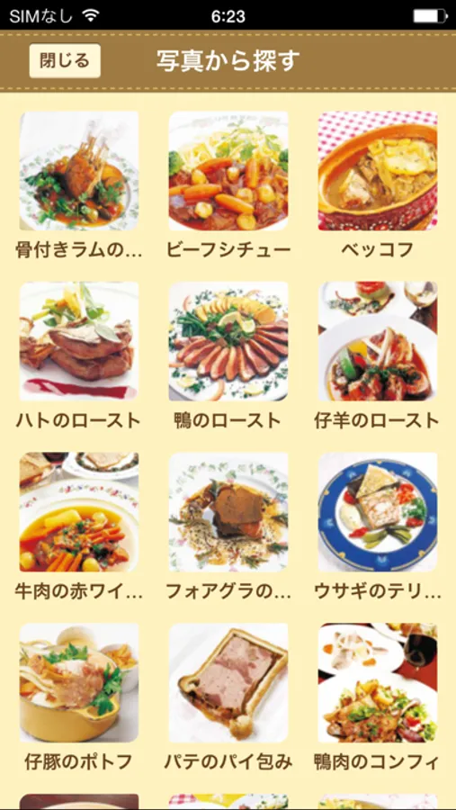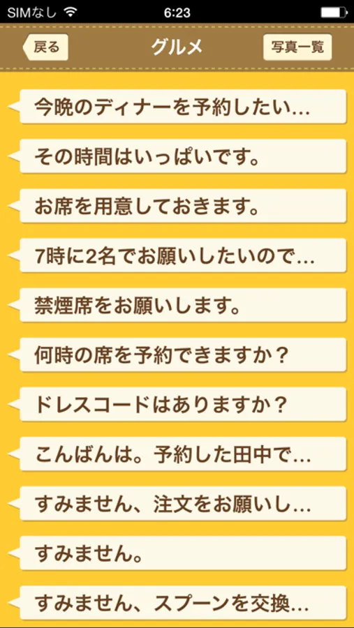 ②料理や飲みものの写真から、フレーズを探せます。 !有料アプリのみの機能!