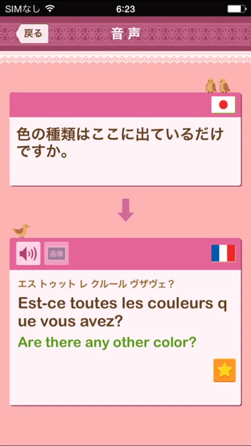 3.日本語と現地語を対比しながら、スピーカーボタンで音声が聞けます。