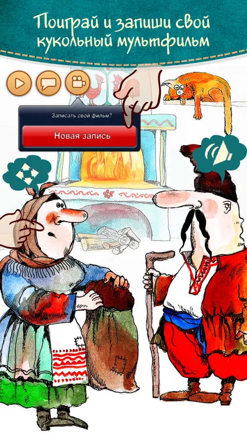 - новая технология – создай свой мультфильм легко и просто: нажми запись и создай свою версию сказки;