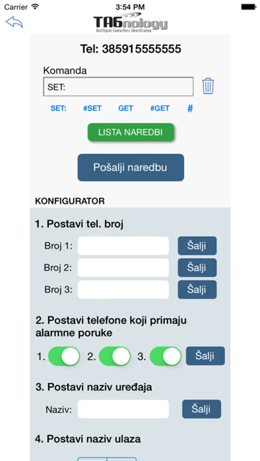 This application works with TAGnology device 'GSM 64-T'.