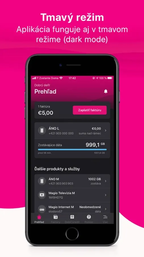 - pridať si do aplikácie všetky vaše mobilné čísla i produkty pevnej siete