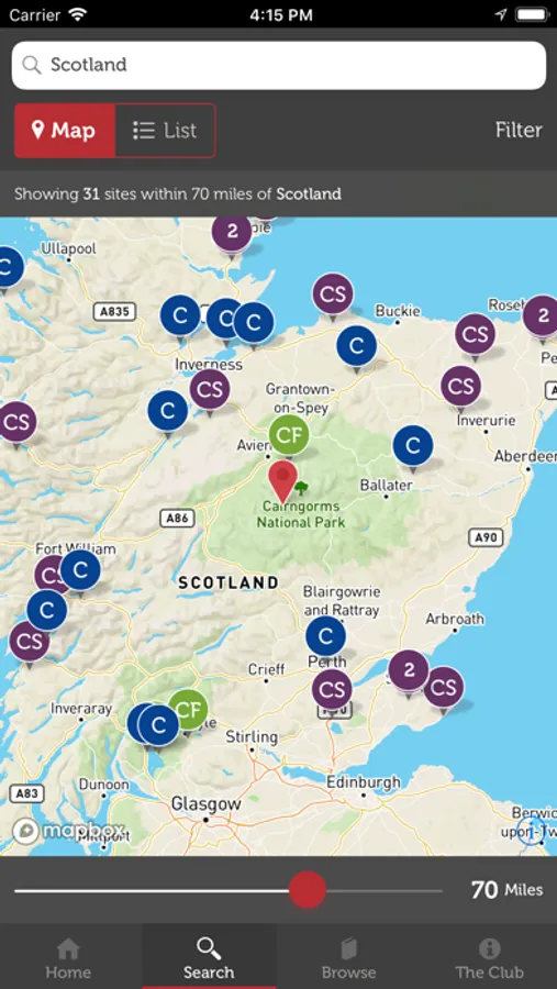 ● Use the interactive map to find site anywhere in the UK