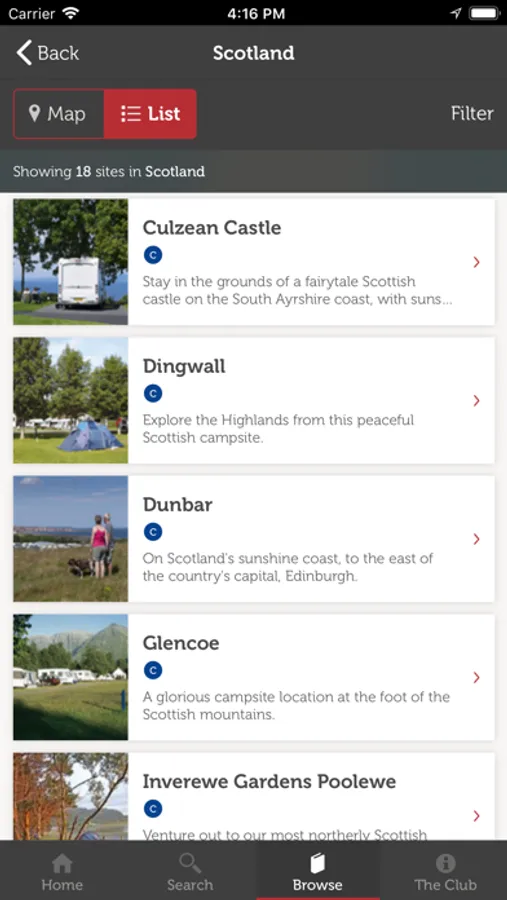 Use the app's search or browse feature to find the right campsite for your needs.