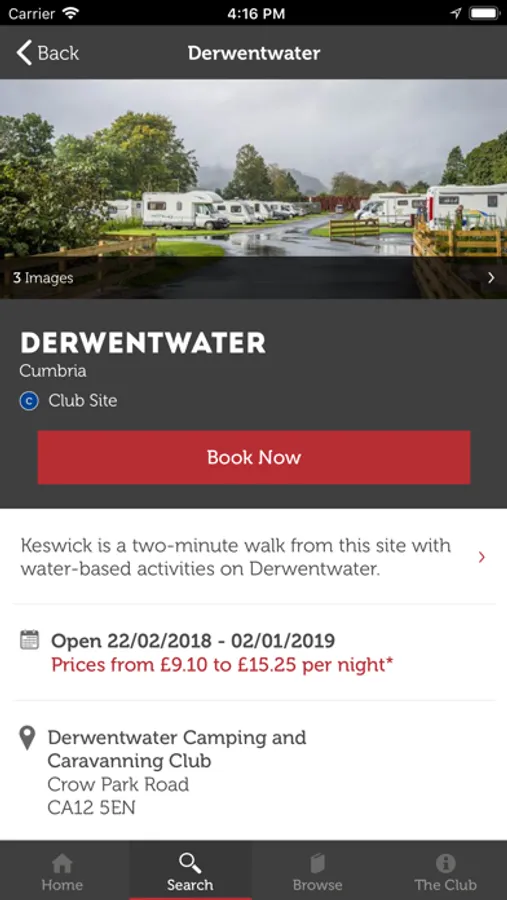 ● In-depth site information including photos, facilities, prices and booking options