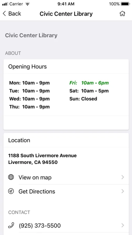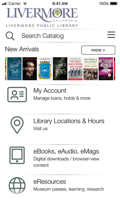 Access Livermore Public Library from your iPhone, iPad or iPod Touch. Search for books, DVDs, audiobooks, CDs, and more. Place holds, check due dates and renew items. Find out what’s happening at the library, or contact us.