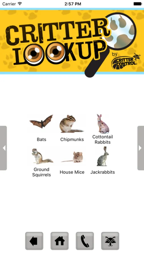 Browse the catalog of small, medium and large mammals, snakes and reptiles, insects and birds to see pictures and learn more about a critter's habitat and behavior.