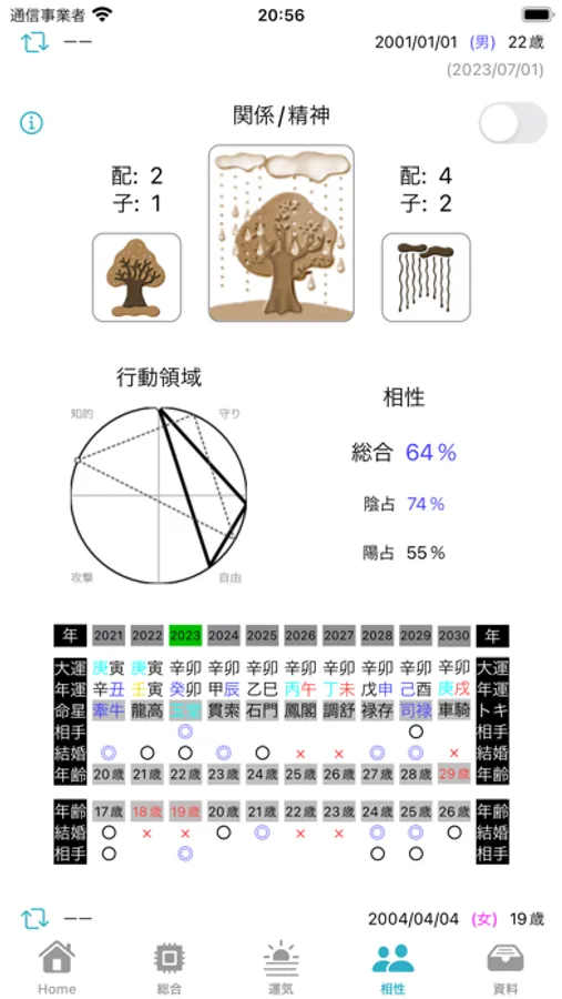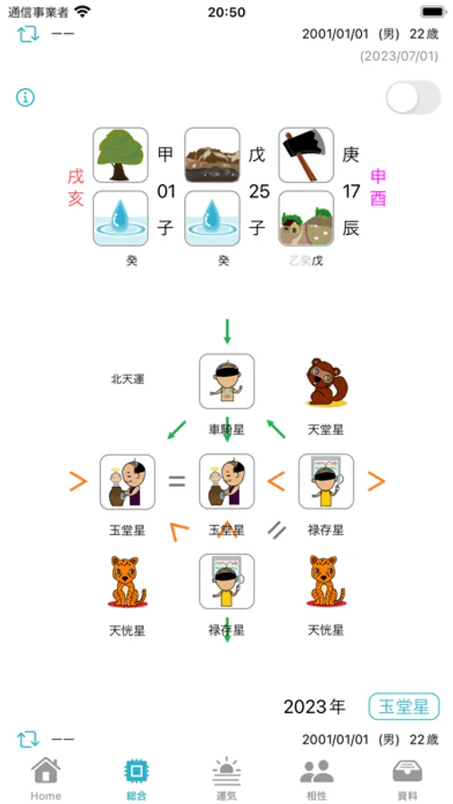 ここで計算しているのは、「宿命」です。これから未来に向かって選択する「運命」の参考にして下さい。また、選択した運命の結果である「運勢」類推にお役立て下さい。