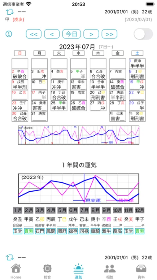 算命学は、「誕生日占い」の一種です。このアプリは、ふだん利用しているカレンダーでおなじみの「太陽暦」で命式を算出しますが、内部的には伝統的な旧暦を用いて計算しています。