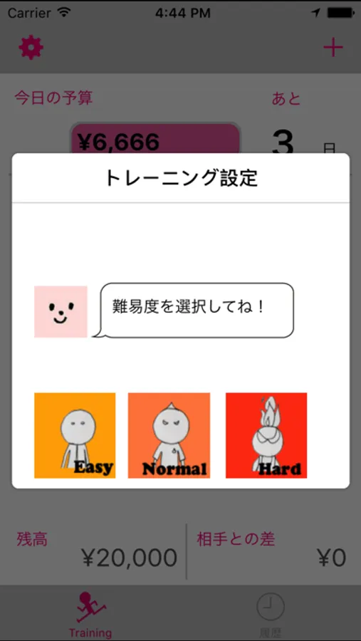 月々のお小遣いと支払日を入力するだけであなたに合わせた貯金エクササイズのプランが作成されますイージー・ノーマル・ハードの3つのモードからお選びください
