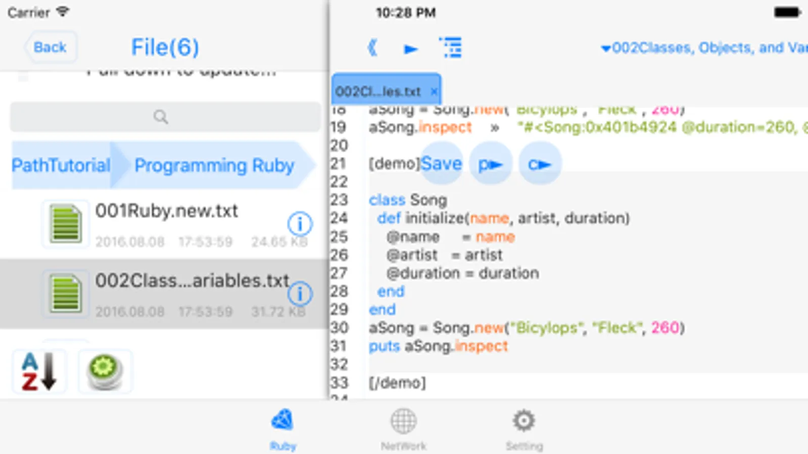*You can save ruby code and learning materials, and can be modified to the save file and delete the save file .