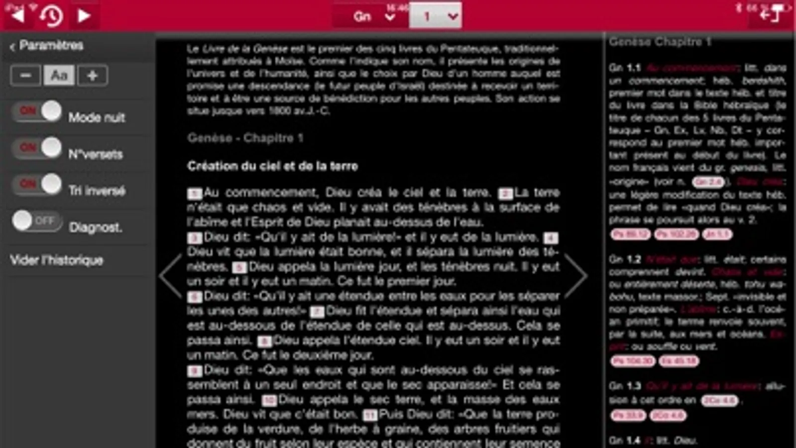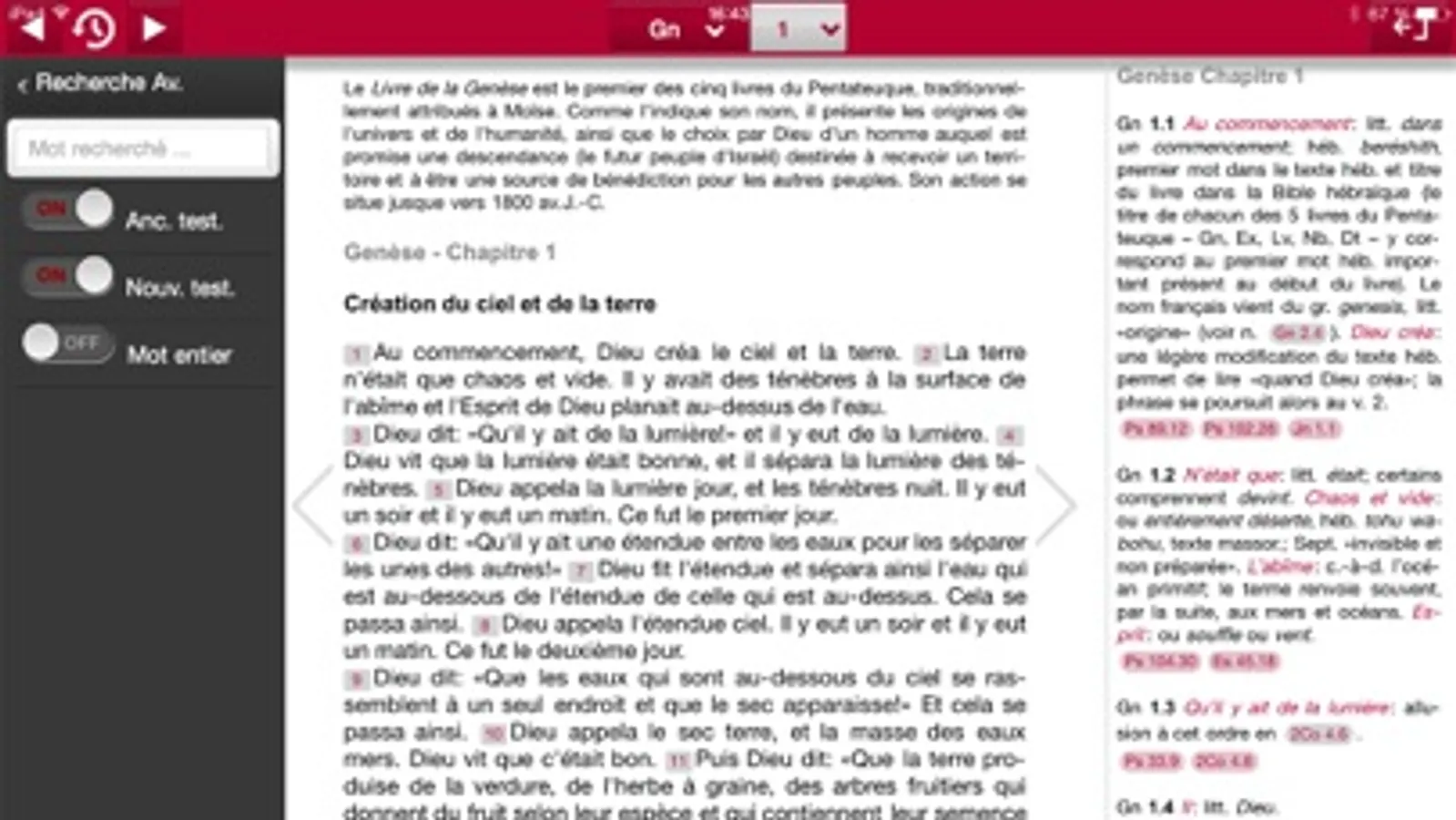- lire la Bible en mode portrait ou paysage, en naviguant de chapitre en chapitre