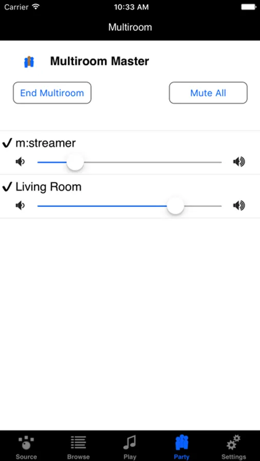 With the new multiroom feature, up to 5 devices can be combined to a group. Audio playback on all devices of a group is fully in sync. Group management and volume control is easily done within a central multiroom view.
