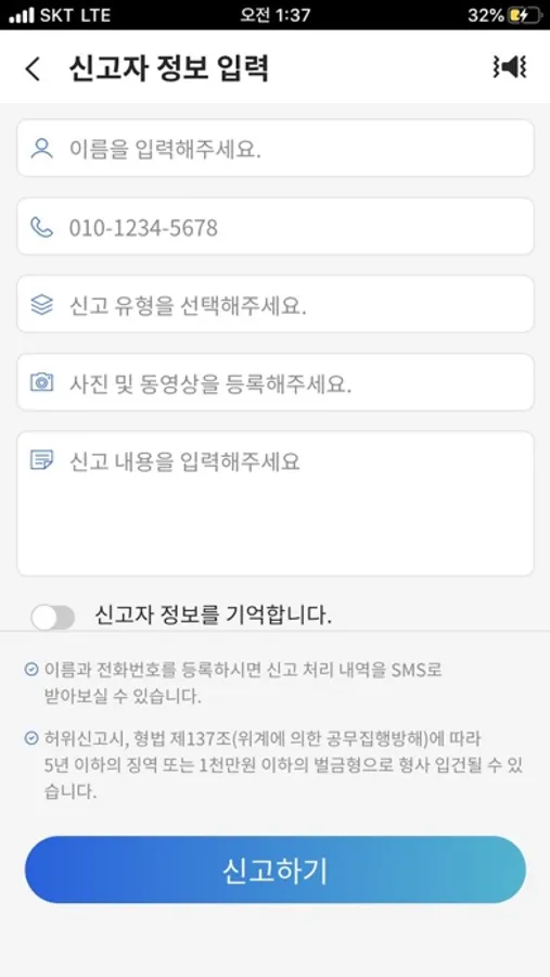앱을 통해 사진, 동영상을 첨부할 수 있으며, 바로 전화신고, 문자전송이 가능합니다.