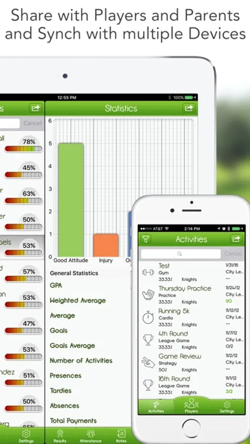 iGrade can be used by Coaches, Players or Parents individually or in collaboration with each others.