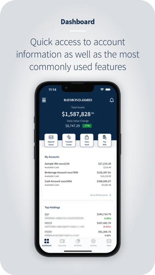 Client Access gives you a powerful, convenient and secure way to view your accounts online anytime. It is optimized for your mobile device, so you can securely manage your investment portfolio, transfer funds, deposit checks, and access up-to-the-minute market information. Whether you want a quick snapshot or an in-depth review, it’s all right here.