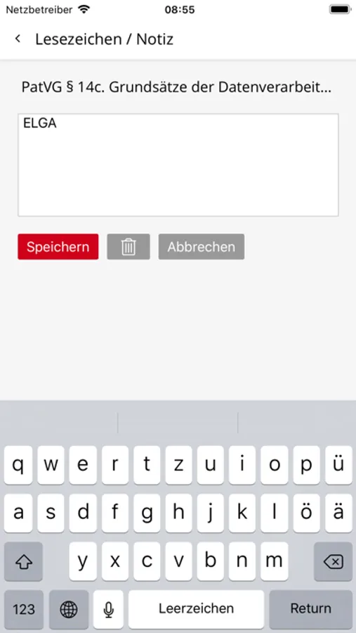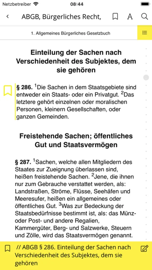 • Lesezeichen mit Farbmarkierung und Notizfunktion. Abbildung auf §-Ebene
