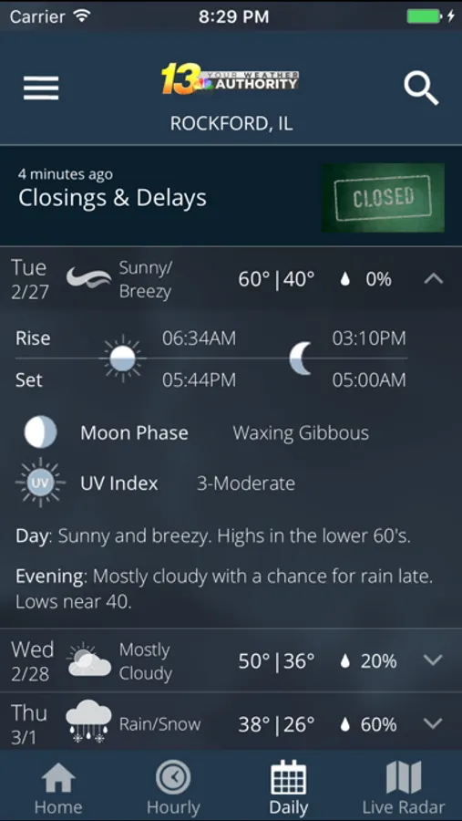 The WREX Mobile Weather App includes: