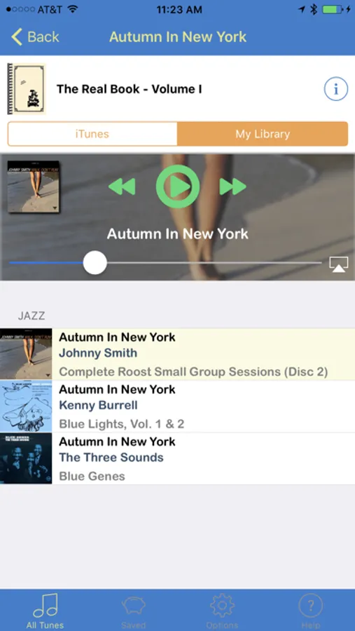 RealGuide provides lists of song titles from some of the best fake books you can buy, and can quickly search the iTunes Music Store for recorded versions which you can preview and purchase (if you choose). What a great way to learn tunes and start expanding your listening library!