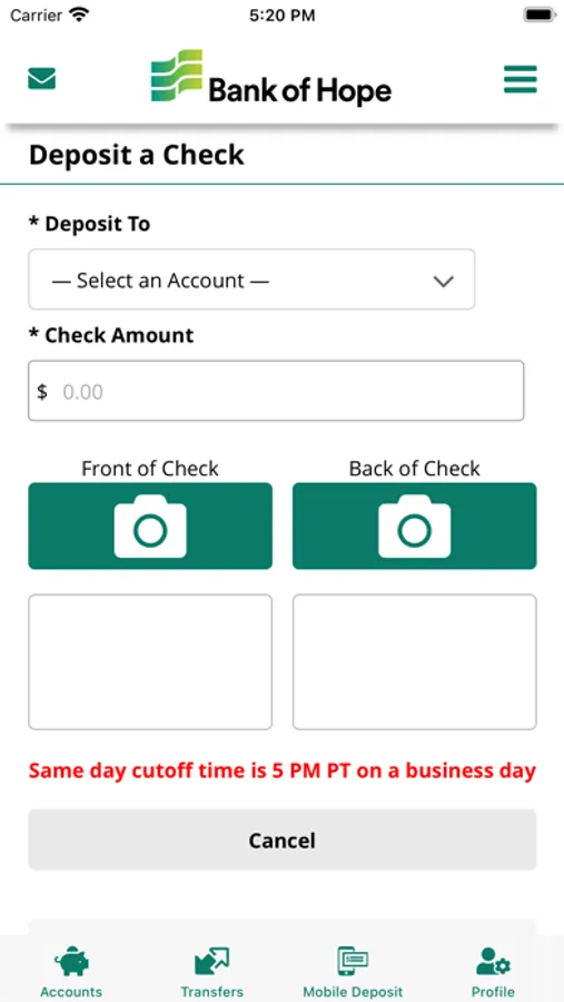 No matter where you are, you can securely manage your accounts 24/7 with Bank of Hope Mobile Banking. You can easily view your account activity, transfer money between accounts, send bill payments, make deposits, locate branches/ATMs and more.