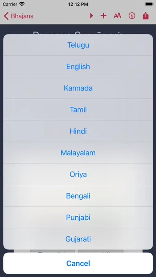 A Bhajan is a devotional song. His Holiness Sri Ganapathy Sachchidananda Swamiji has written and composed thousands of bhajans on various deities and philosophical songs. This app helps learn the bhajans by synchronizing the text with audio of the bhajan.