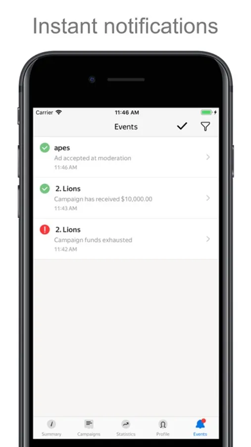 - Receive only essential notifications about your campaigns — like when they start or stop