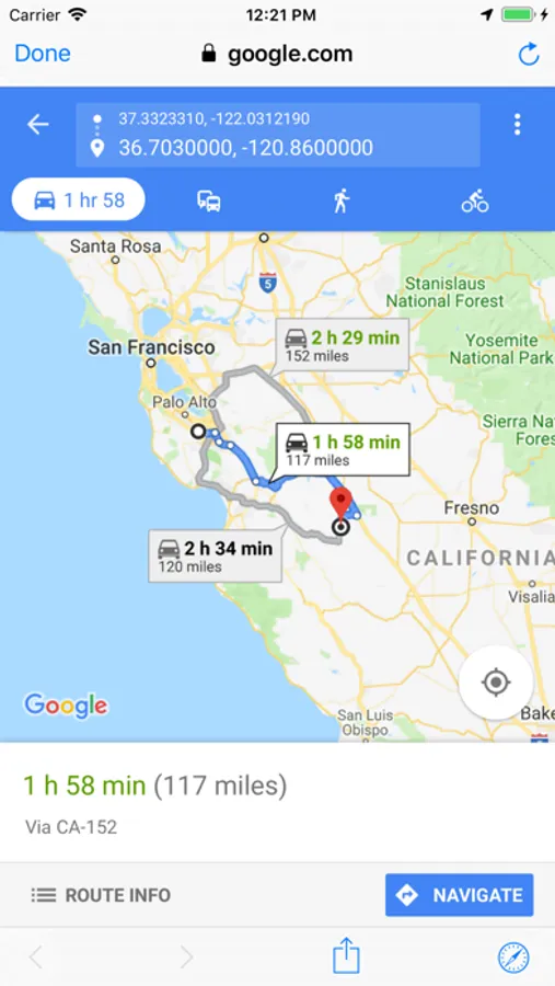 - Tapping on a hot spring shows the driving distance and time between your location and the hot spring.