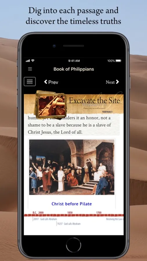 Experience the ultimate way to construct and connect the events of Scripture. Finally, understand His-story and your place in it. This app contains several Bible studies that immerse you in the ancient world and our premium interactive resource which brings the setting of Scripture to life.