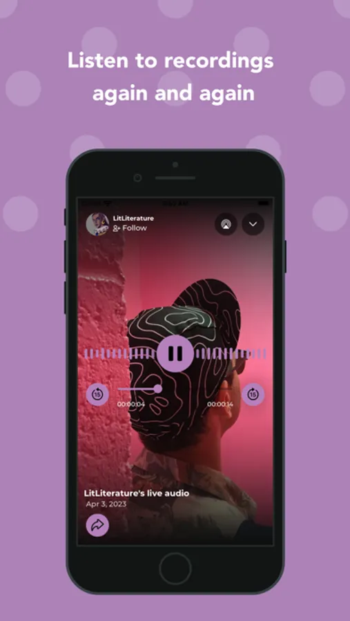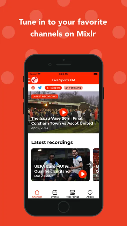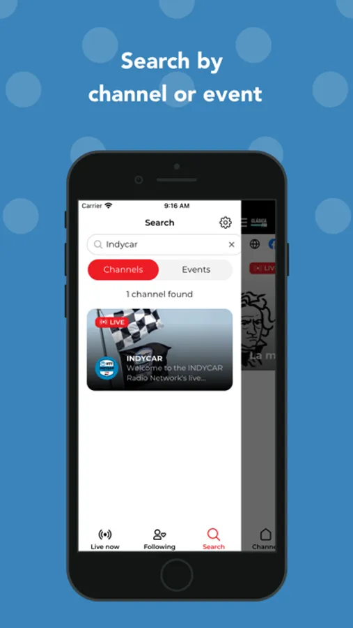 Follow your favorite channels and get notified when an event is going live. Be active in the community and chat with other listeners, or simply sit back and listen to the live stream. Scroll through a channel’s recordings collection and play back recordings to your heart’s content. Finally, search for more channels to follow and love.