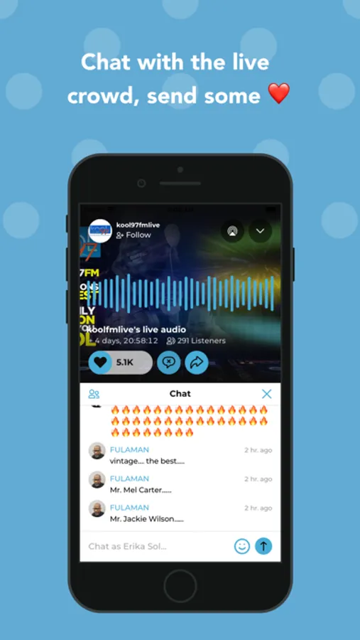• Chat while listening live, send hearts and emojis