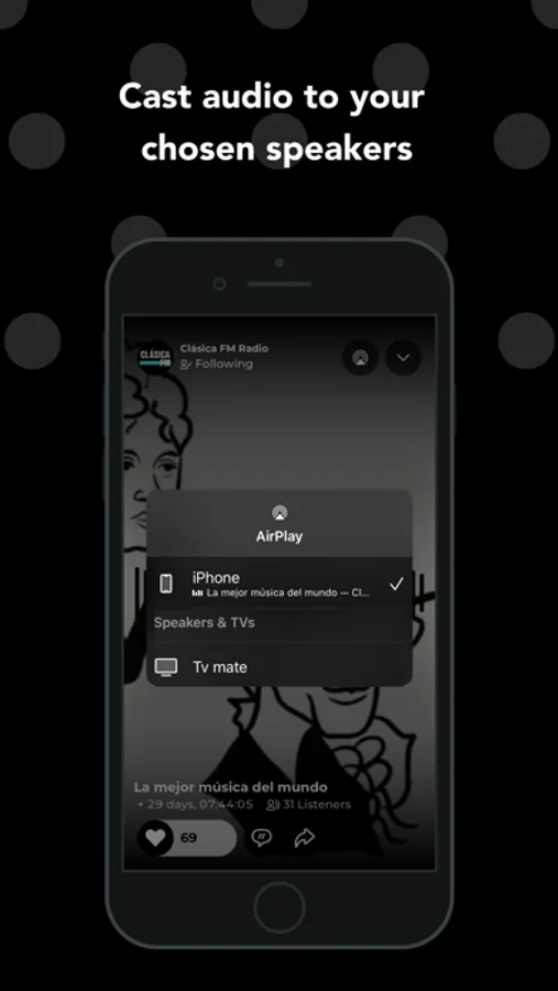 Listen to live audio and recordings on channels created by sports teams, artists, musicians, podcasters, spiritual leaders and online radio stations.