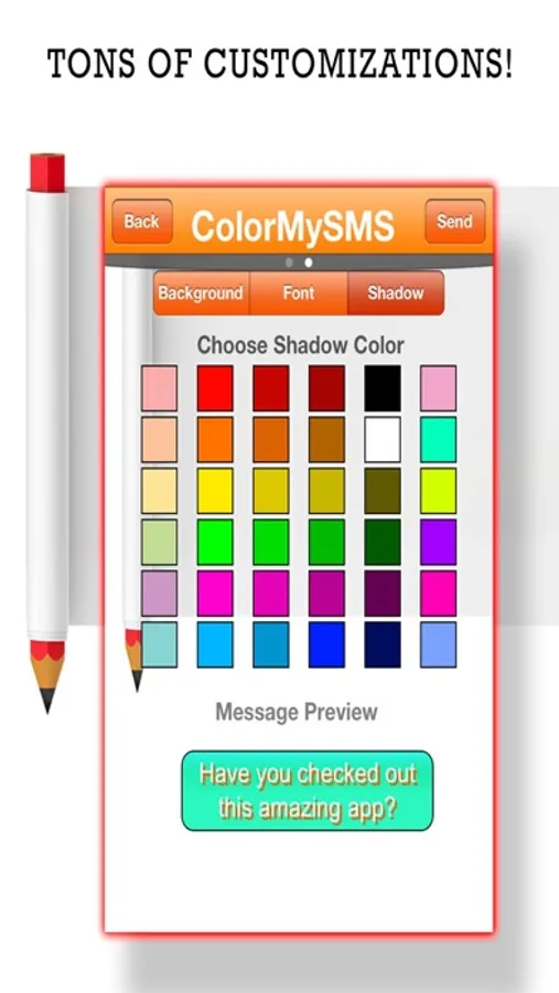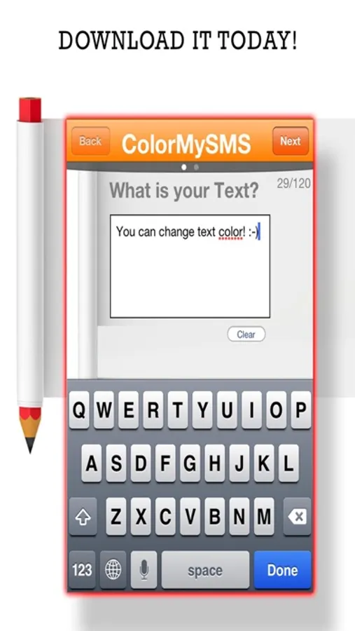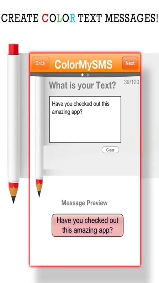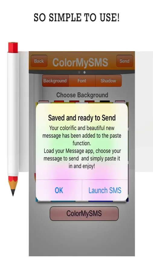 Welcome to ColorMyText! This great app allows you to customise your text in a wide array of colours and styles and then use it to send in a text or MMS message!