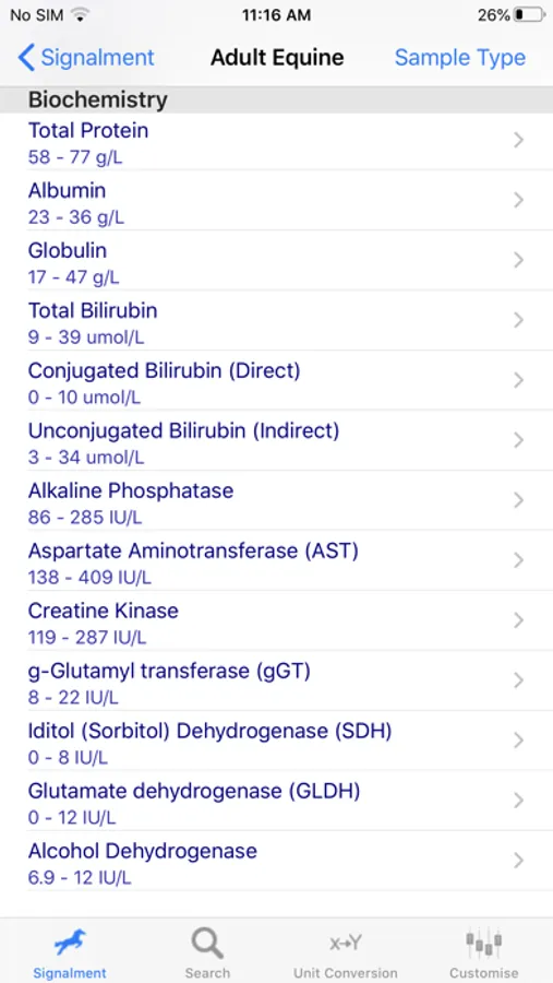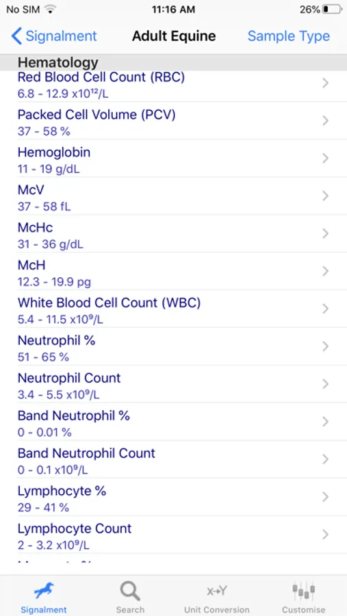 The App is a unique resource giving normal values for 230 different lab tests in 10 different signalments of horses.