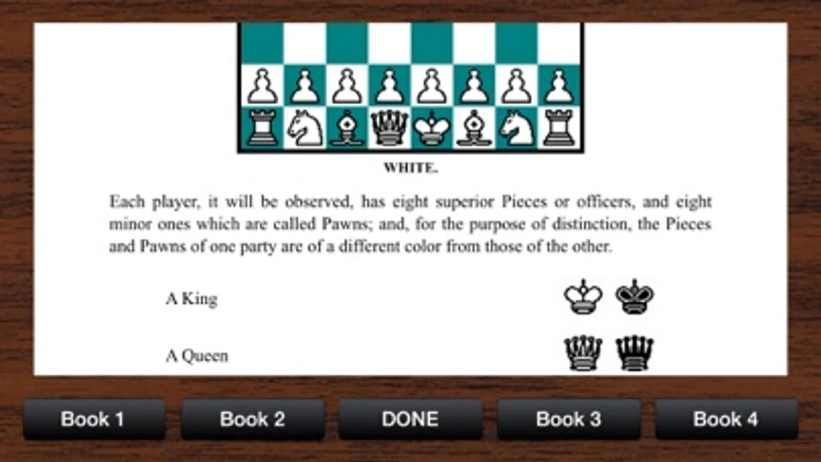 Includes 4 chess ebooks built-in for offline reading on chess Fundamentals, Strategy, Game Play, and Openings.
