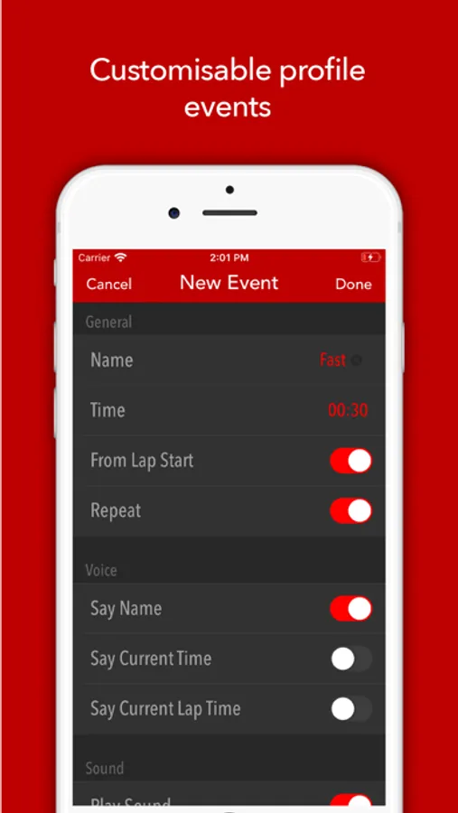 Super Stopwatch is a stopwatch application with customisable events. Events are useful when you need some notification at a specific time and you can't look at the stopwatch. Events can be spoken, play sound or vibrate at specific time. Events can be also configured to announce you stopwatch time or lap time. Events can be repeated or fired only once. Events can be timed from start of stopwatch or from start of current lap. Super Stopwatch groups events into profiles. Switching between groups of events is made easy by selecting the active profile. All records are saved into history.