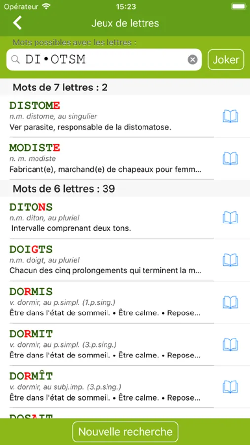 Dans l’aide aux jeux de lettres, la liste des solutions est proposée en fonction de la position des lettres et par ordre décroissant. Il est désormais possible d'insérer des jokers dans la liste des lettres soumises.