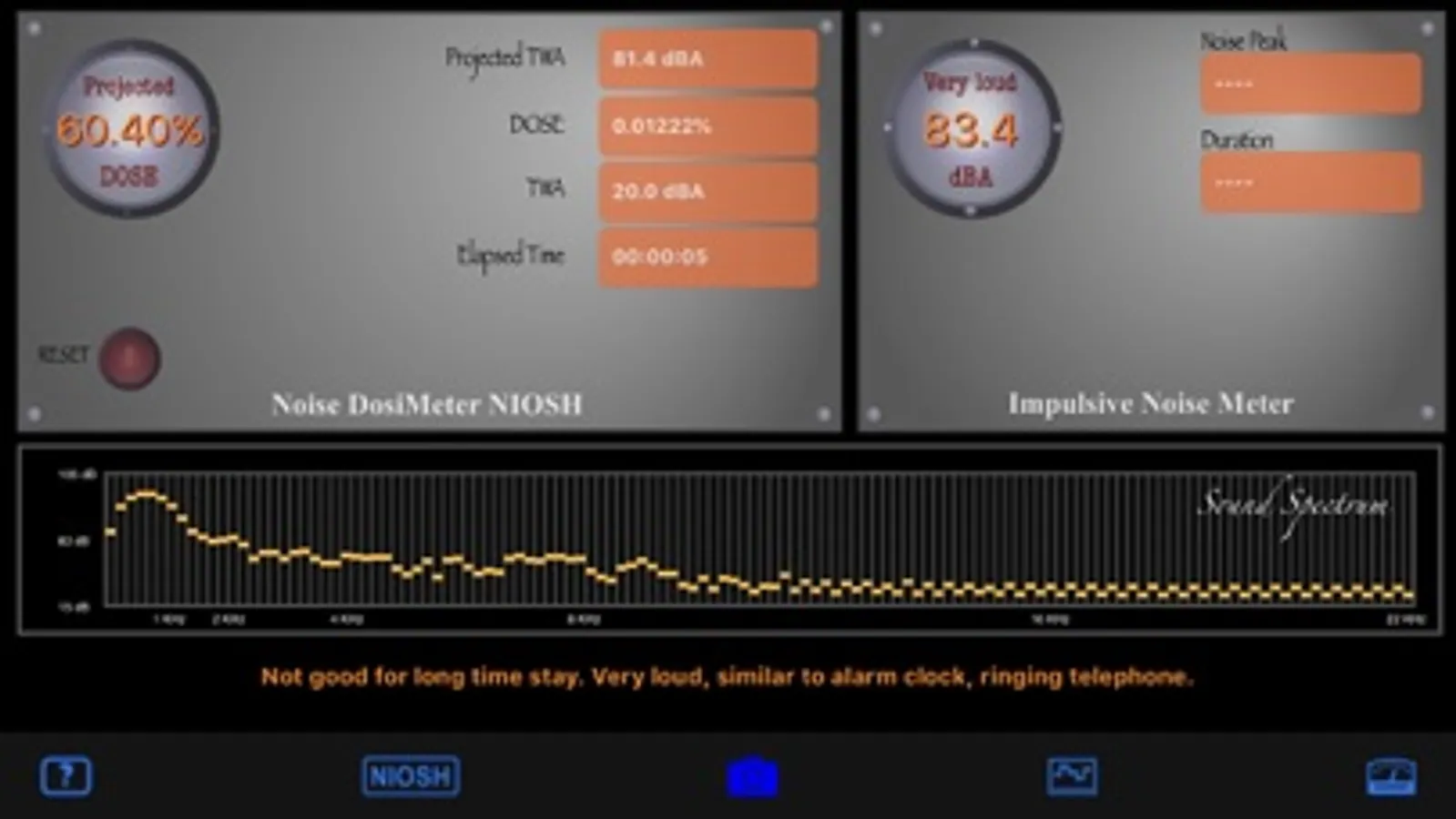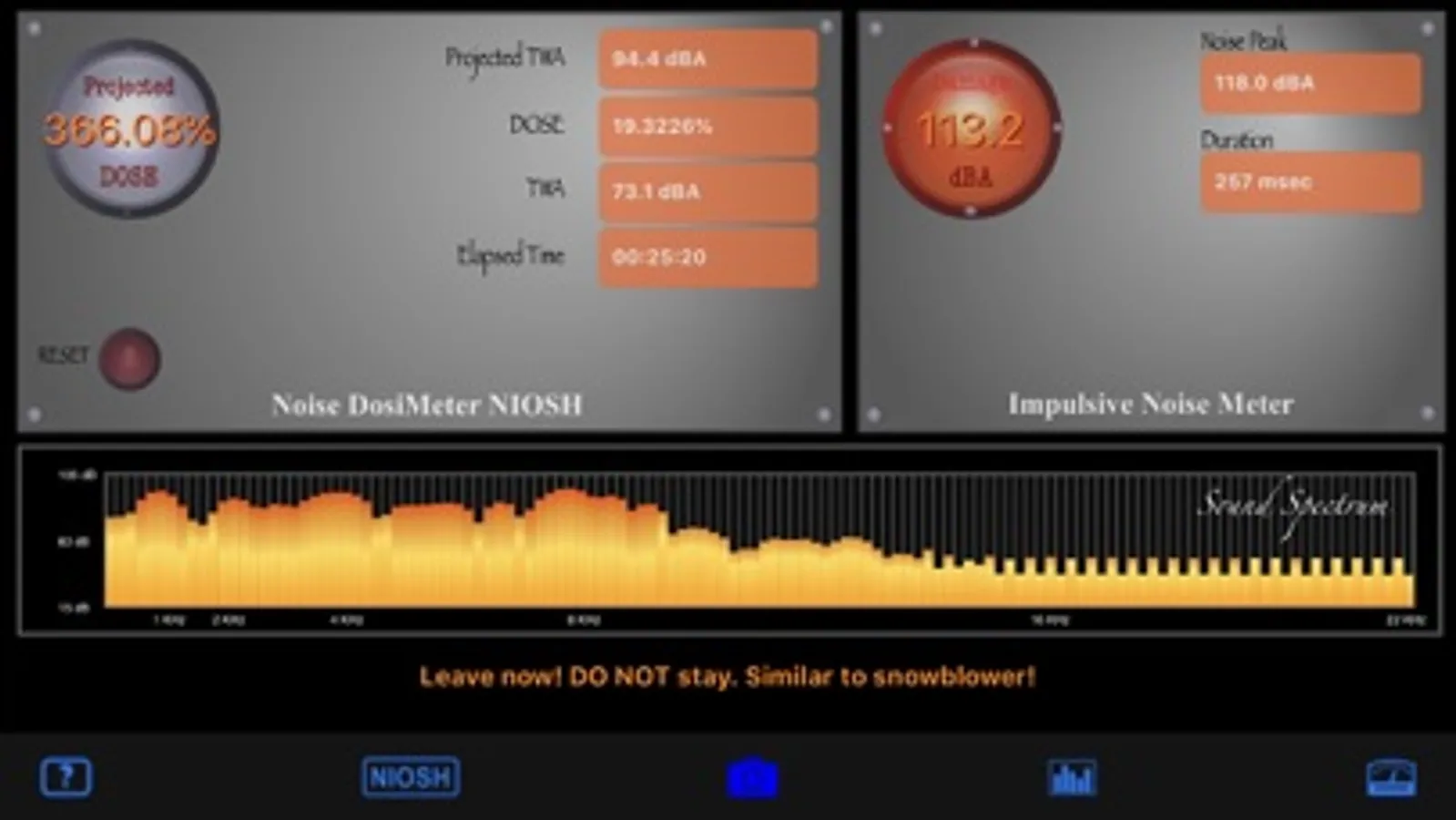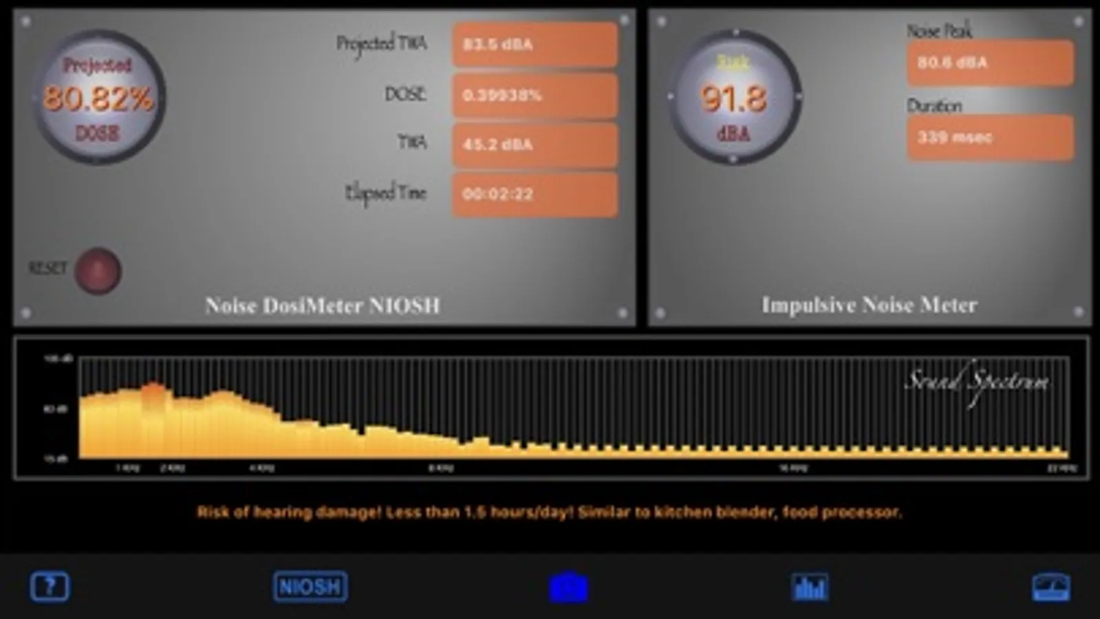 Precise and "Best In Class" Multi-Function Noise Meter : 1.Sound Level Meter, 2.Noise (OSHA/NIOSH) DOSI Meter, 3.Impulsive Noise Meter with live Professional Grade Hearing-Safety Monitor Messages & Alerts.
