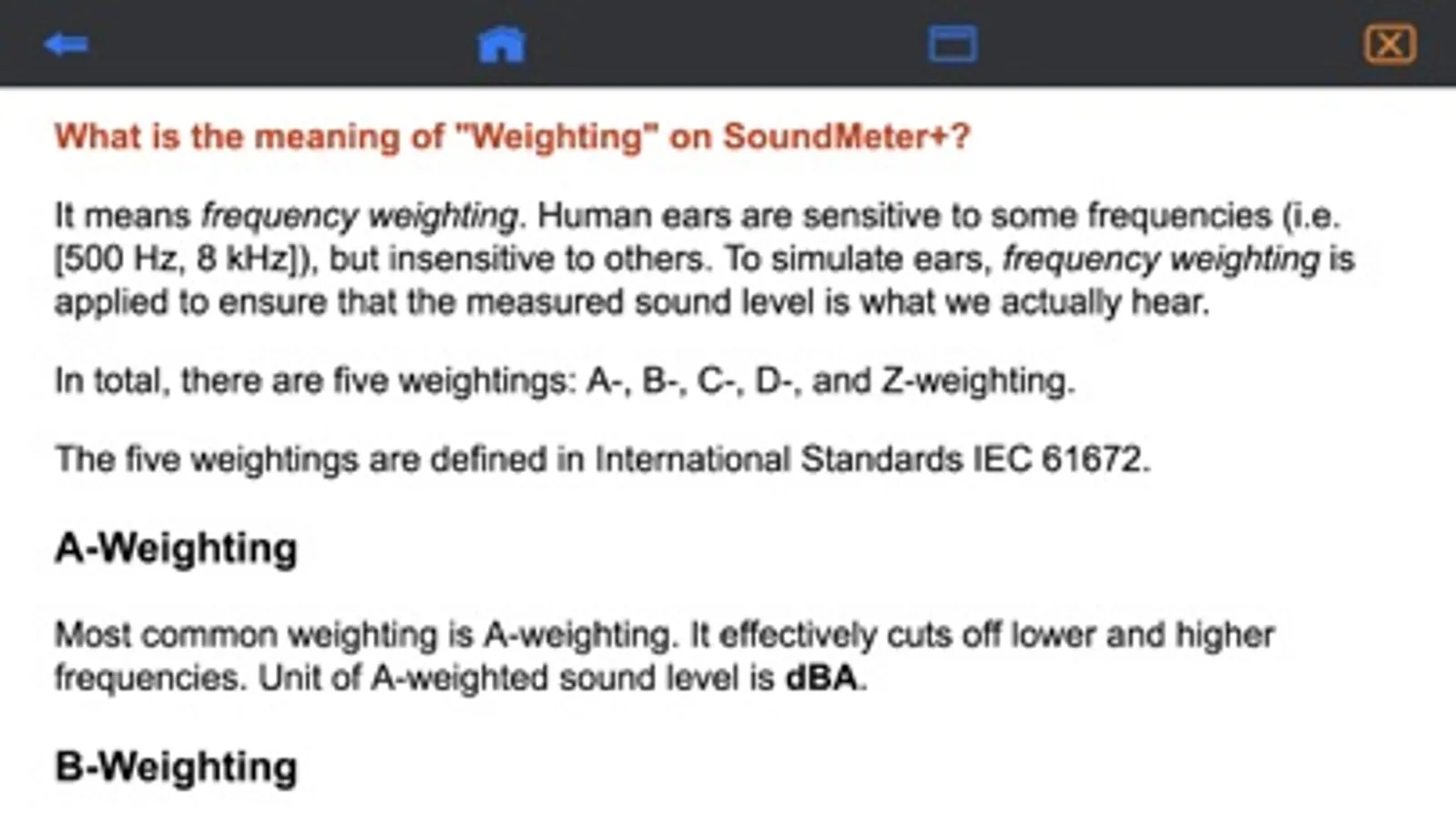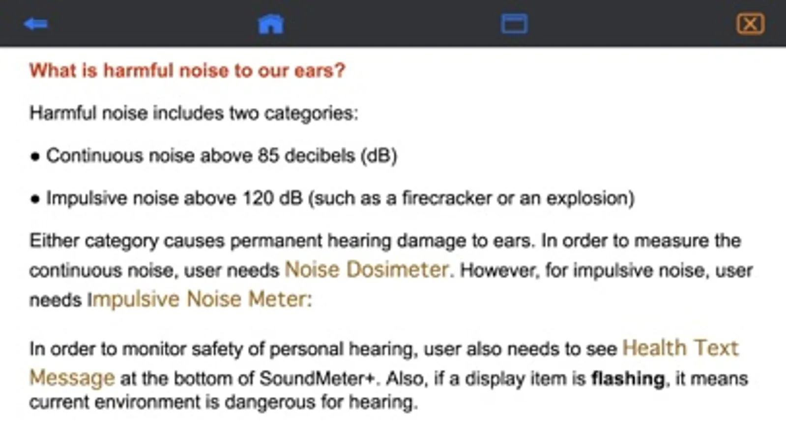 Disclaimer: SoundMeter+ is assisting you to be aware of hearing protection and danger of loud noise. This app and all its information are not intended to be used in diagnosis or treatment of any medical condition. If you suspect any medical condition, please consult a doctor. This app and all its information are not intended to be used as legal evidence for workplace/merchandise safety, or for any other fields. If you suspect any safety issue, please seek professional advice of regulatory authorities.