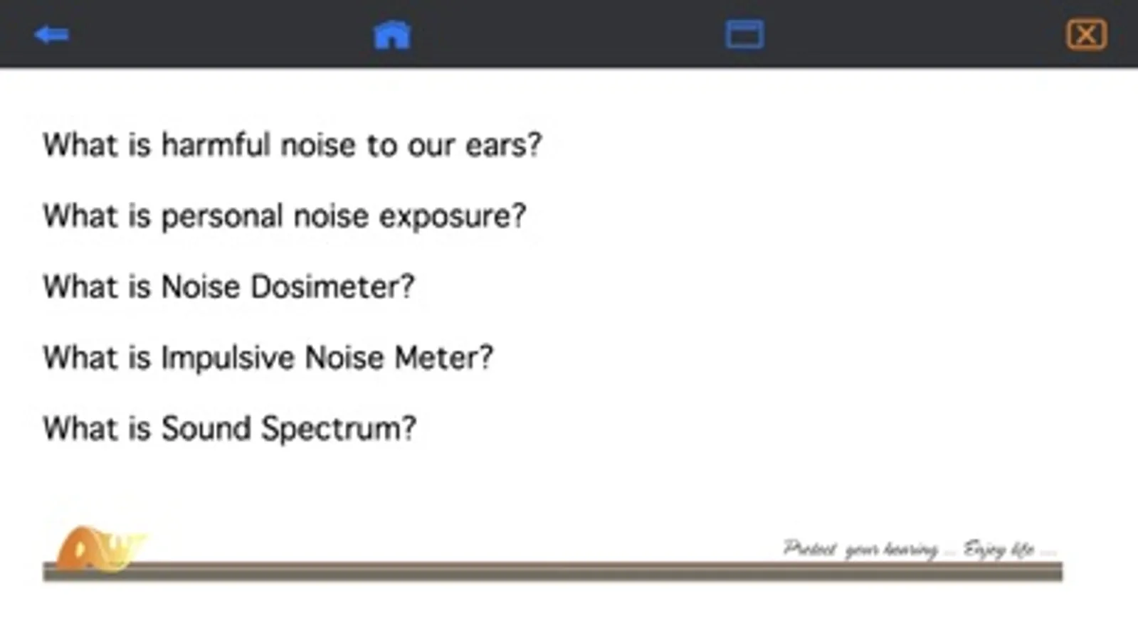 Live Spectrum Display, Measurement Snap Shot & Email and Comprehensive Noise & Hearing Protection Guidances.