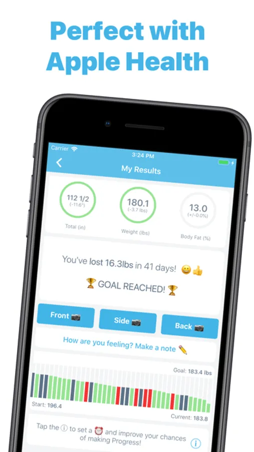 Progress App makes it easier than ever to stay on top of your health and maintain a healthy lifestyle. Take photos and enter your data to track your body’s changes over time and to understand how your workouts and diets have played a role in your weight loss journey.