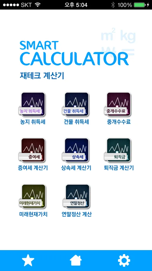 금융계산기를 포함하여 총 6개 카테고리, 30여종의 다양한 계산 기능을 제공하오니 많은 이용 바랍니다.