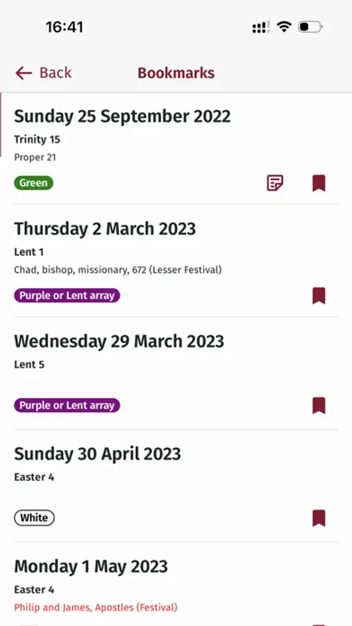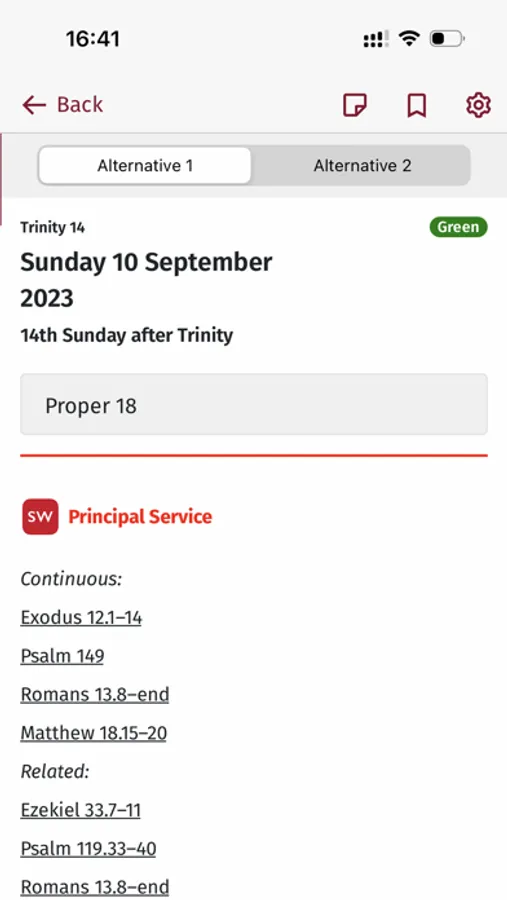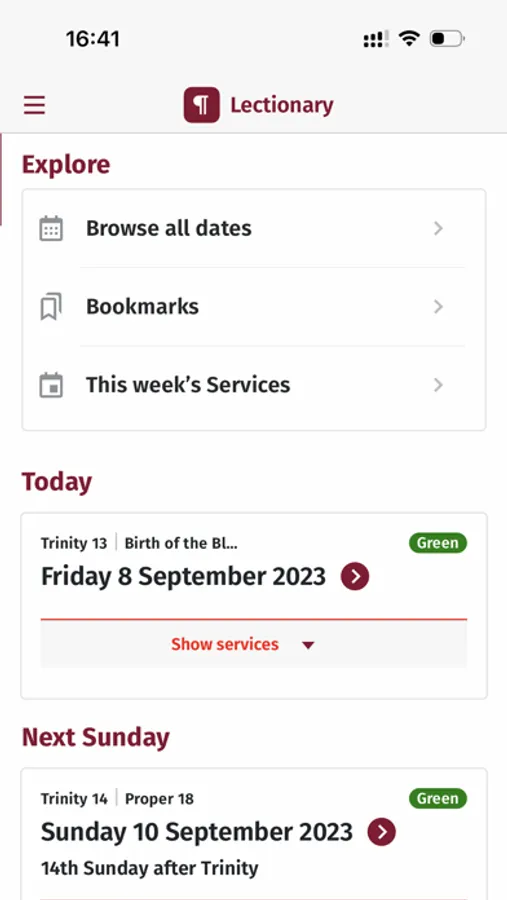 The Common Worship Lectionary app includes the official Calendar, Bible Readings (NRSV) and Collects from the Church of England.