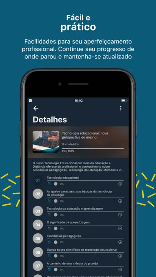 • Acesso off-line: Ao baixar uma aula, você pode fazer sem precisar acessar a internet!
